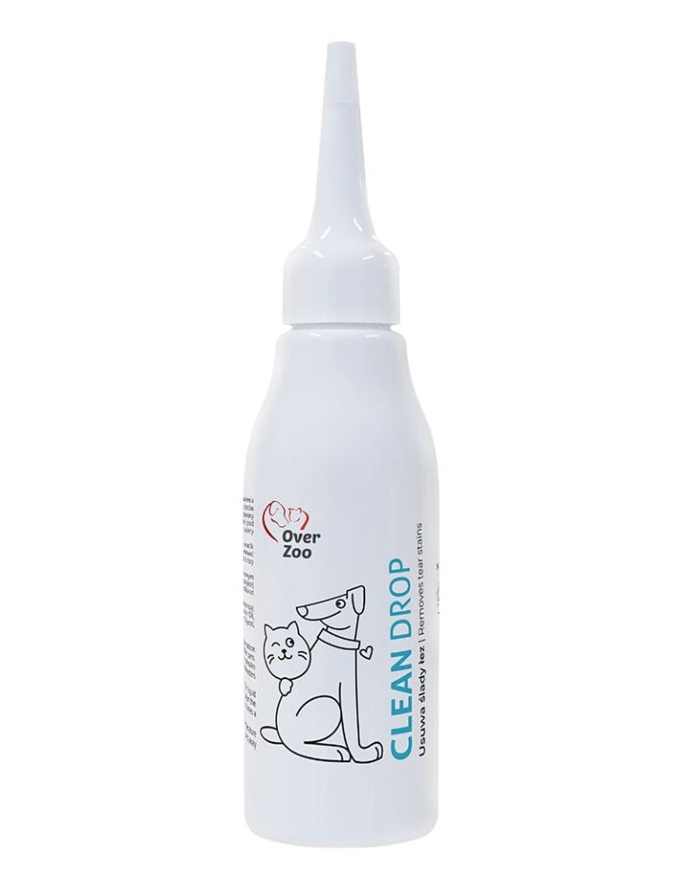 OVER ZOO Clean Drop ir specializēts šķidrums, kas paredzēts, lai samazinātu krāsas izmaiņas, kas rodas pārmērīgas asarošanas dēļ suņiem, kaķiem un citiem maziem mājdzīvniekiem. Regulāra lietošana palīdz ierobežot redzamos traipus zem acīm un uzlabot acu apkārtnes estētiku. Produkts ir iecienīts gan audzētāju, gan profesionālo frizieru salonu vidū.