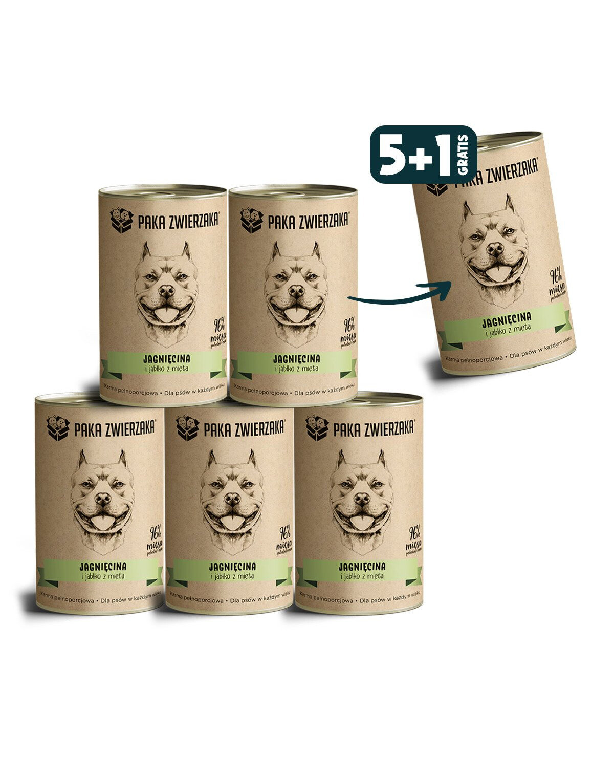 Barība nodrošina pilnvērtīgu un sabalansētu maltīti visu vecumu suņiem. Tā sastāvā ir līdz 96 % jēra gaļas ar buljonu. Tā pagatavota no augstākās kvalitātes dabīgām sastāvdaļām - sulīgas jēra gaļas, kam pievienoti āboli ar piparmētrām un laša eļļu. Ēdiens ir bagāts ar barības vielām un labi sagremojamiem dzīvnieku izcelsmes olbaltumvielu avotiem, kas nepieciešami organisma pareizai darbībai. Viena olbaltumvielu avota izmantošana samazina pārtikas alerģiju un nepanesību risku.