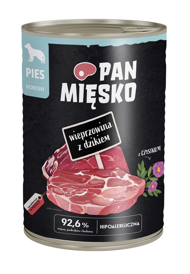 Iepazīstieties ar augstgaļīgajām mitrajām barībām suņiem Pan Mięsko. Tās izceļas ar rūpīgi izvēlētām gaļām, pievienojot sulīgus Polijas ābolus un vērtīgas piedevas, piemēram, garšaugus vai sēklas, kas pozitīvi ietekmēs jūsu suņa veselību un kondīciju. Mūsu receptes ir sagatavotas speciālistu, lai nodrošinātu jūsu četrkājainajam draugam tieši to, kas viņam nepieciešams. Jūsu suns ir pelnījis visu labāko.