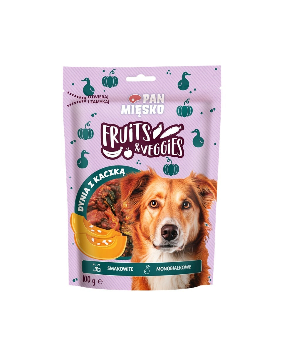 Vai tavs suns mīl neparastus garšu salikumus? Viņš noteikti iemīlēs aromātiskos našķus Pan Mięsko FRUITS & VEGGIES! Augļi un dārzeņi, kas ietīti garšīgos gaļas gabalos, ir īsta svētku mielasts. Našķi ir lieliska balva treniņu laikā, bet arī lieliska ideja uzkodu starp ēdienreizēm tavs mīlulis.