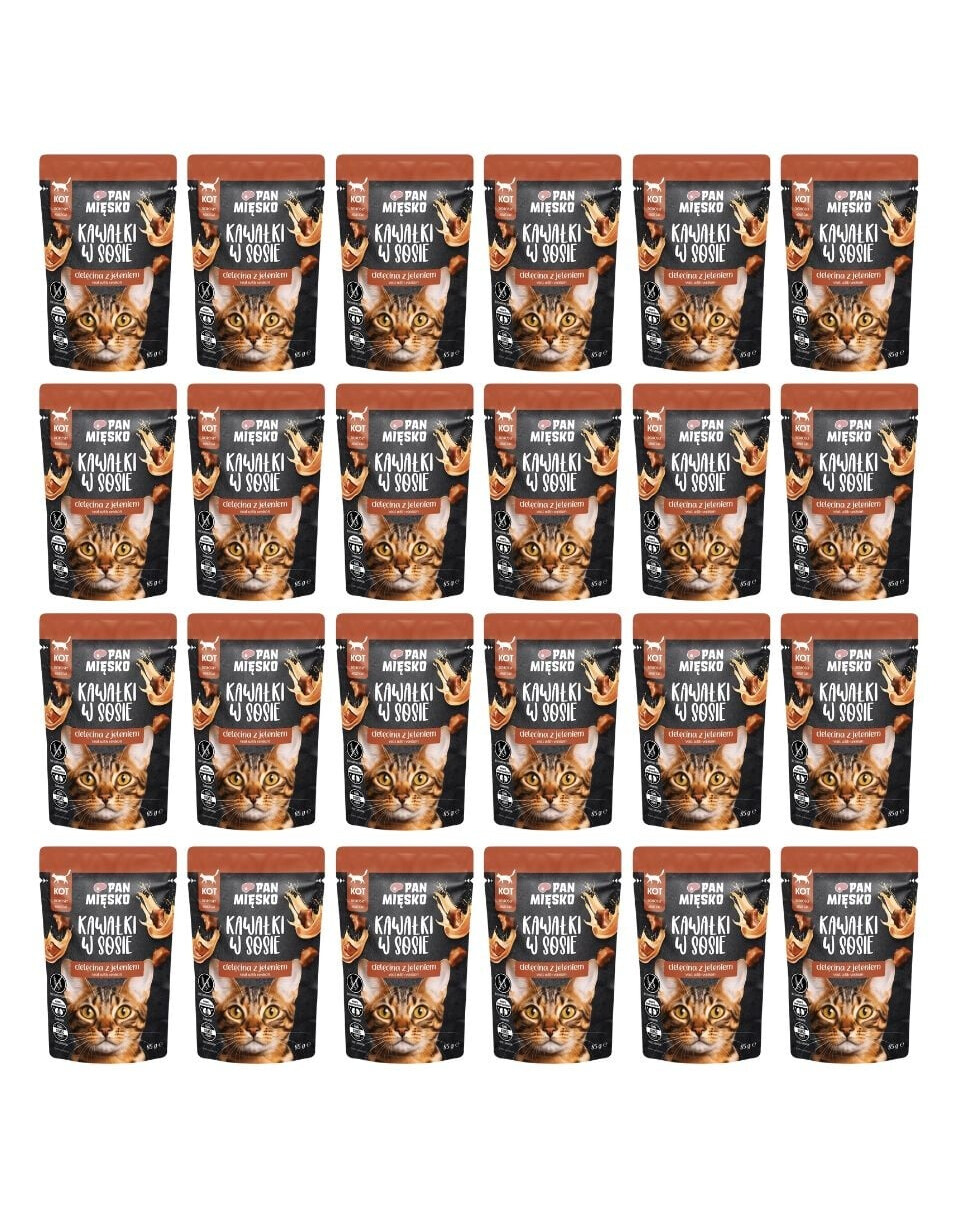 SASTĀVS: cūka 71 % sasmalcinātos gabaliņos* (gaļa 31 %, sirdis, aknas, plaušas), staltbrieža 8 % sasmalcinātos gabaliņos*, liellopa olbaltumvielas 3 %, tapiokas ciete, minerālvielas, žāvētas dzērvenes 0,2 %, laša eļļa 0,2 %, žāvētas alus raugs 0,2 %, baziliks 0,1 %. *Gabaliņi veido 52 % gatavā produkta.