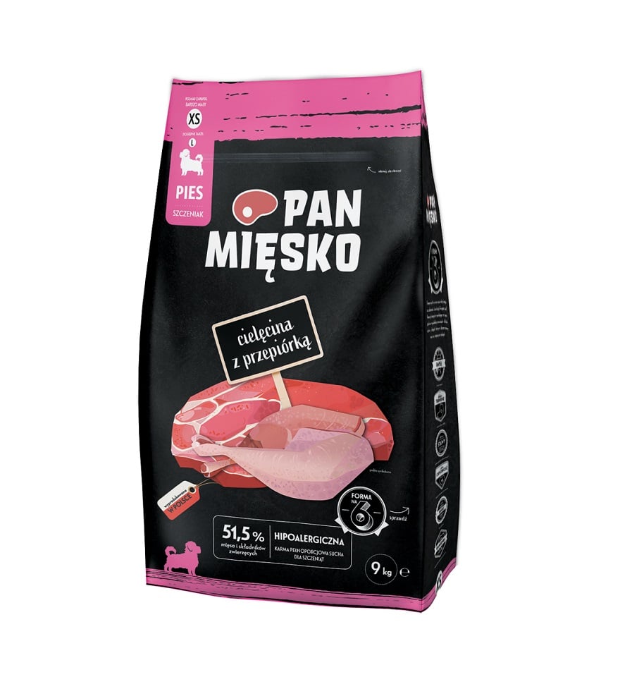Iepriecini savu suni ar hipoalerģisku sauso barību no Pana Miēsko. Tā satur rūpīgi izvēlētas gaļas ar sulīgu, poļu ābolu, veselīgu dārzeņu un vērtīgu uzturvielu pievienojumu, kas pozitīvi ietekmēs tava suņa veselību un kondīciju. Mūsu receptes ir sagatavotas ar ekspertu palīdzību, lai nodrošinātu tavam četrkājainajam draugam to, kas viņam nepieciešams. Tavs suns pelnījis to labāko.