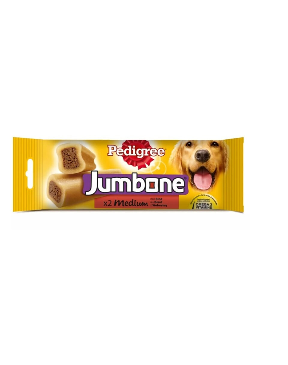 Lai bagātinātu sava suņa uzturu, izvēlieties PEDIGREE Jumbone. Tas ir liellopa un mājputnu gaļas garšas kārums, kas apvieno kraukšķīgu apvalku un sātīgu un gaļas pildījumu. Gardais kārums apmierina vajadzību košļāt un grauzt, kā arī sniedz jūsu sunim absorbējošu nodarbošanos. Šī papildbarība nesatur mākslīgās krāsvielas vai aromatizētājus un ir bagāta ar vitamīniem, minerālvielām un Omega-3 skābēm, kas ir dabisks baudījums jūsu suņu draugam.