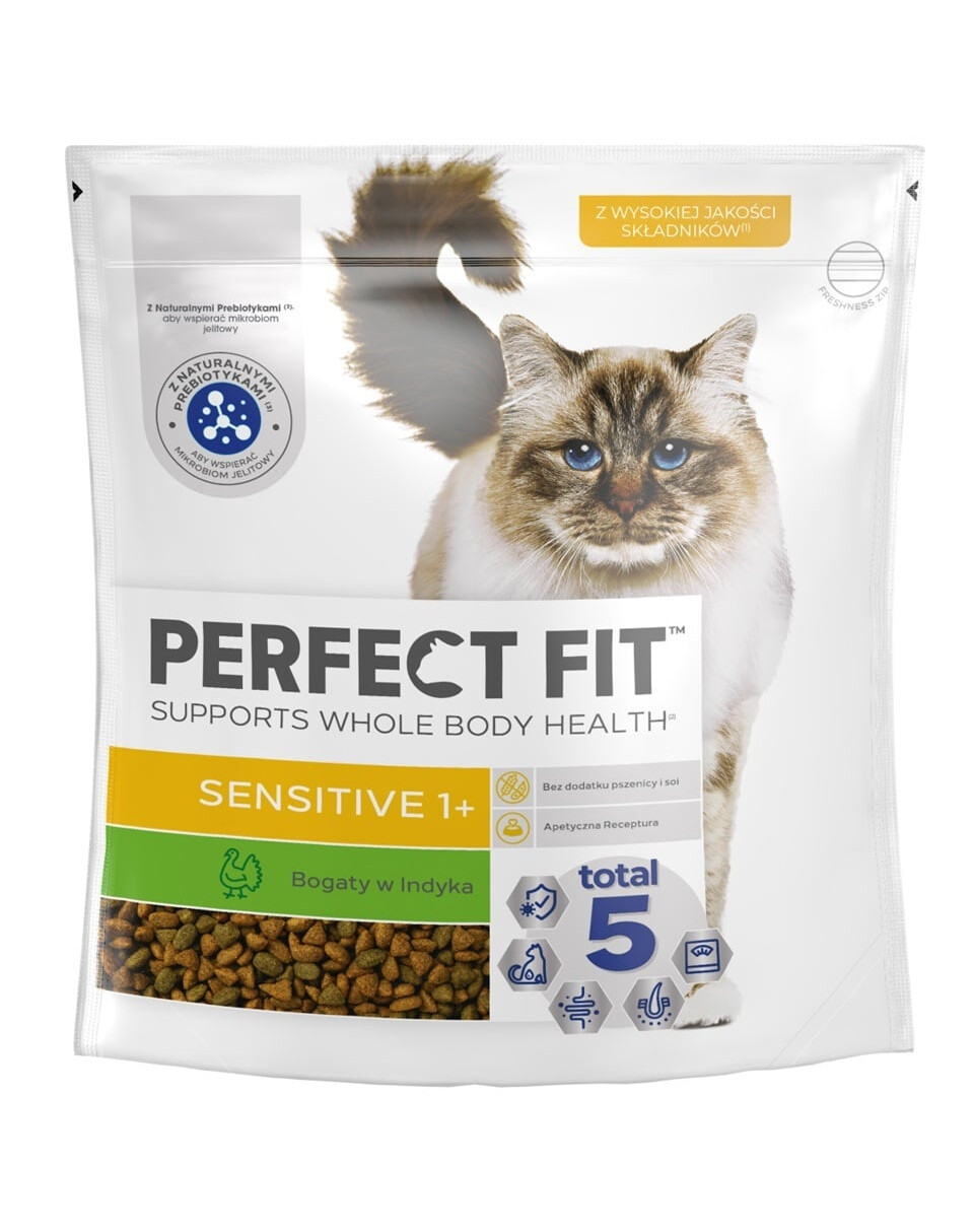 Pārtika Perfect Fit Sensitive 1+ bagāta ar tītara gaļu satur unikālu formulu Total 5, kas atbalsta 5 svarīgākās pieauguša mājdzīvnieka veselības jomas: stiprina imūnsistēmu, veicina veselīgu gremošanu, nodrošina veselīgu urīnceļu sistēmu, veselīgu ādu un kažoku, kā arī uztur optimālu ķermeņa kondīciju un svaru. Perfect Fit Sensitive 1+ recepte ir izstrādāta sadarbībā ar veterinārārstiem un uztura speciālistiem no WALTHAM Dzīvnieku Zinātnes Institūta, lai nodrošinātu nepieciešamās barības vielas pieaugušiem, jutīgiem kaķiem. Tāpat kā citi varianti, arī Perfect Fit Sensitive 1+ barība, kas bagāta ar tītara gaļu, sniedz papildu priekšrocības: tā ir ražota bez kviešiem un sojas, tai ir pievilcīga recepte, kā arī tā satur dabiskos prebiotikas, lai rūpētos par zarnu mikrobiomu. Izvēloties šo barību savam jutīgajam mājdzīvniekam, jūs varat būt droši, ka unikālā Perfect Fit formula atbalsta visa jūsu kaķa ķermeņa veselību un nodrošina papildu veselības ieguvumus, kas ir īpaši pielāgoti viņa vecumam un individuālajām prasībām.