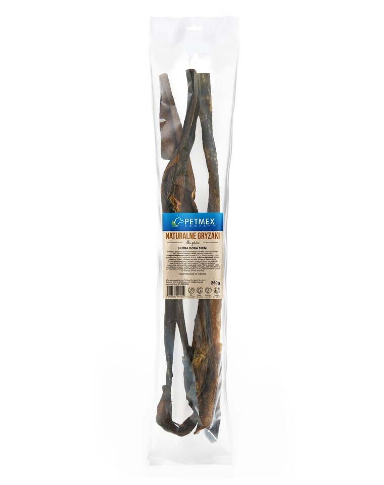 Izcils, dabisks košļājamais priekšmets, kas izgatavots no žāvētas mežacūku ādas. Tā ir aromātiska un izturīga uzkoda, kas apmierina dabisko košļāšanas vajadzību, atbalsta mutes higiēnu un sniedz sunim intensīvas garšas sajūtas. Mežacūka ir reti sastopams, hipoalerģisks olbaltumvielu avots – ideāli piemērots suņiem ar pārtikas jutību vai alerģijām.