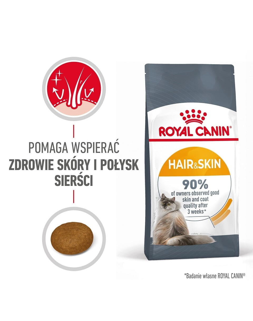 ROYA CANIN® Hair & Skin Care ir pilnvērtīga, sabalansēta barība, kas izstrādāta, lai atbalstītu veselību un spalvas spīdumu.
