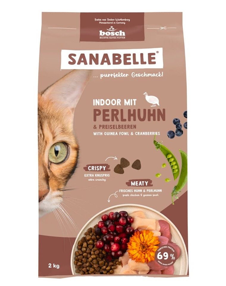Sanabelle Indoor ar perlicu ir pilnvērtīga sausā barība, kas izstrādāta īpaši kaķiem, kuri visu savu dzīvi pavada mājās. Tās recepte ir izstrādāta, ņemot vērā šādu kaķu zemāku enerģijas patēriņu un viņu tipiskos uzvedības modeļus, piemēram, biežāku spalvas laizīšanu vai mazāku fizisko aktivitāti.