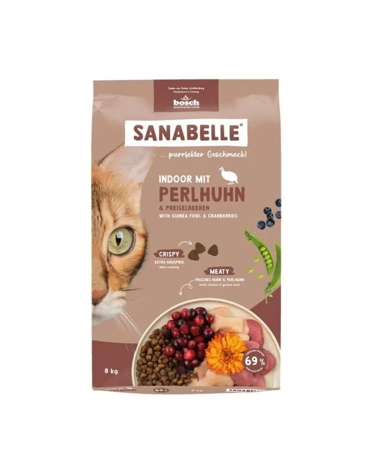 Sanabelle Indoor ar perlicu ir pilnvērtīga sausā barība, kas izstrādāta īpaši kaķiem, kuri dzīvo tikai mājās. Recepte ir pielāgota viņu zemākajām enerģijas prasībām un specifiskajiem ieradumiem, piemēram, biežākai kažoka kopšanai un ierobežotai fiziskai aktivitātei.