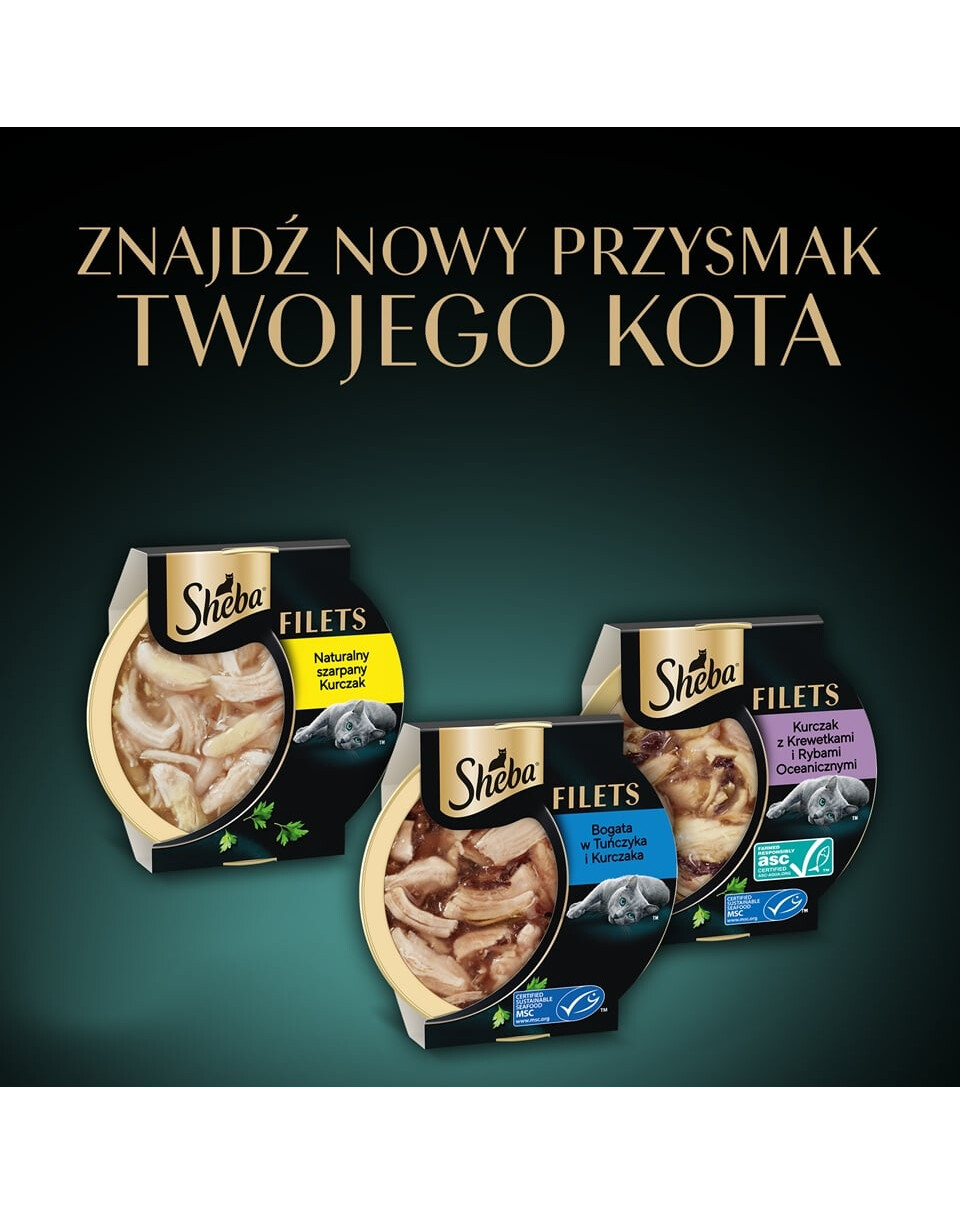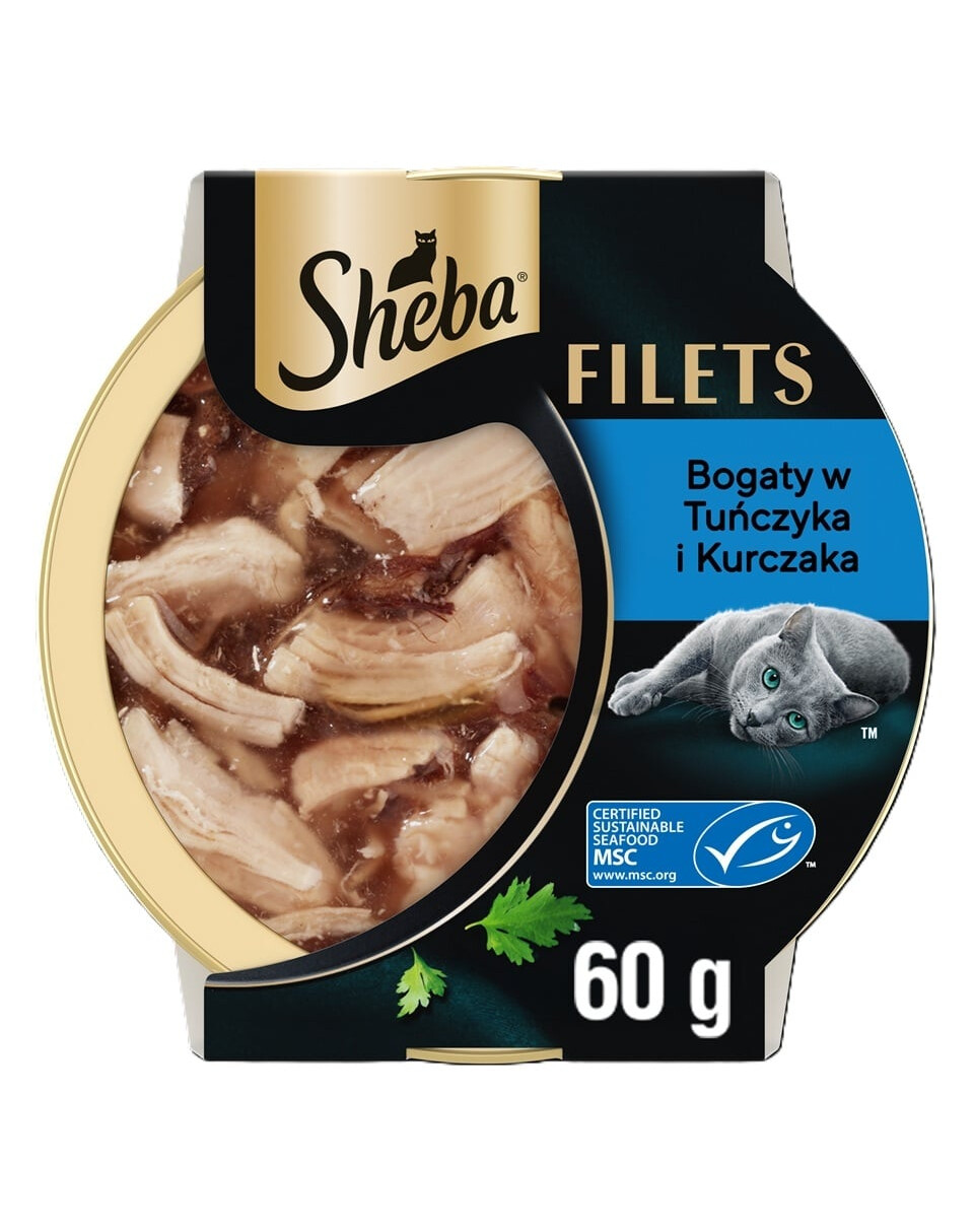 Kompozīcija rūpīgi izvēlētiem, maigiem filetiem garšīgā mērce. Vilinoša mitrās barības recepte ar tekstūru, kuru jūsu kaķis iemīlēs. Pieejama ērti, pārstrādājamās SHEBA 60 g traukos.
