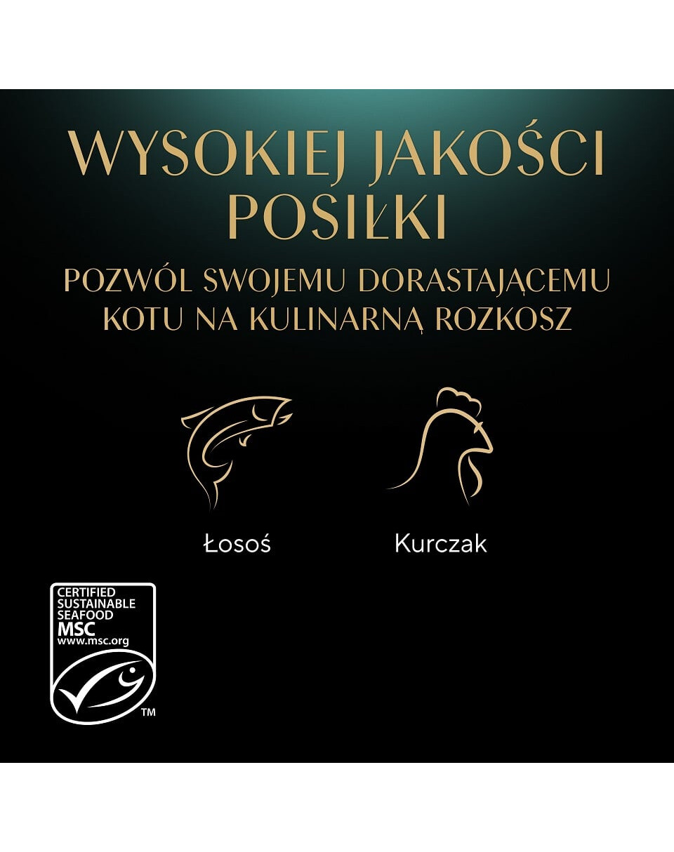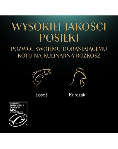 Pilnvērtīga mitrā barība kaķēniem gardā mērcē ar lasi un vistas gaļu.