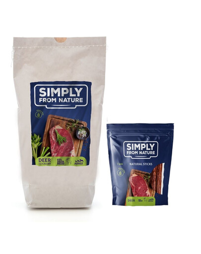 Svaiga brieža gaļa (muskuļaudi) 42%, žāvēta brieža gaļa (muskuļaudi) 23%, žāvēti selerijas 12%, žāvētas sarkanās bietes 6%, pētersīļi, žāvēti un malti ķirbji, olu pulveris, āboli, bumbieri, burkāni, rozmarīns, linu eļļa, Šidigera jukas ekstrakts, fenhelis, biešu mīkstums 2%, rīsu dīgsti, maltas dadžu sēklas 1%.