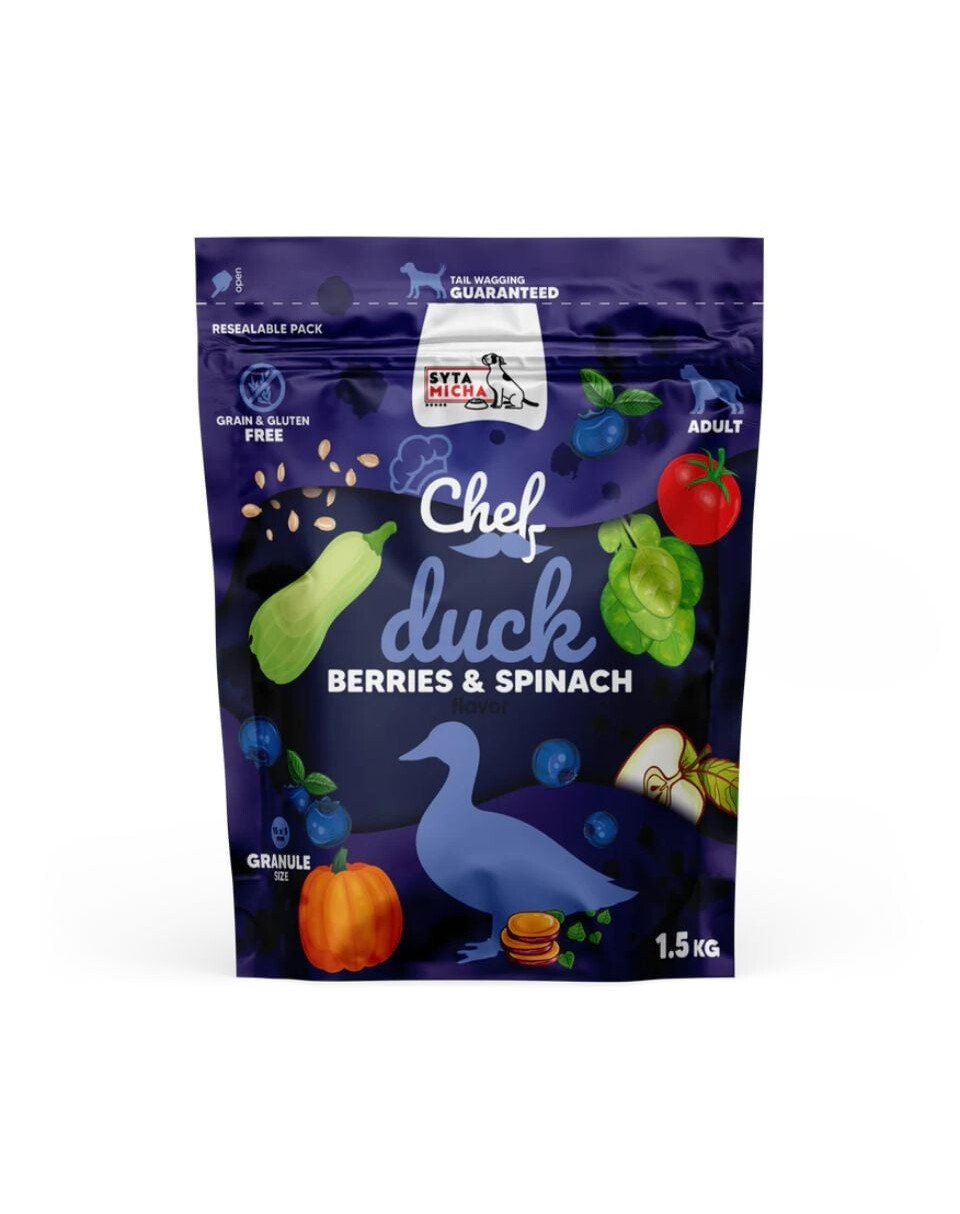 Ogļhidrāti nāk no batātiem, kas atbalsta gremošanu, tiem ir zems glikēmiskais indekss un tie ir labi panesami jutīgiem suņiem. Dārzeņu (cukini, spināti, ķirbis) un augļu (ogas, ābols) pievienošana nodrošina dabīgas vitamīnus (C, K, A, E, B grupas), minerālvielas, šķiedrvielas un spēcīgus antioksidantus – tostarp antocianīnus un resveratrolu no ogām, kas atbalsta imunitāti, acis, asinsriti un palēnina novecošanās procesus.