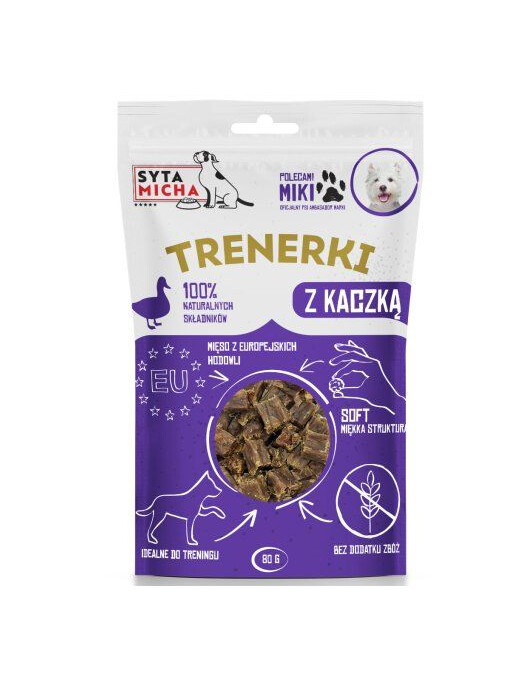 Treniņi suņiem ar pīli. Tie ir monoproteīnu produkts, ideāli piemērots suņiem ar alerģijām. Satur A, C un E vitamīnus imunitātes stiprināšanai.