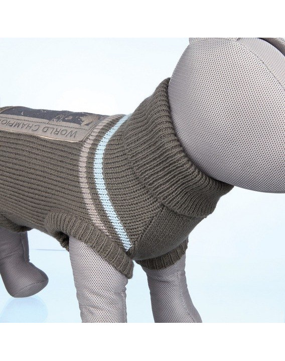 Labi pieguloša un cieši pieguloša, ar rievotām ķepām. Aizmugurē ir plāksteris ar uzrakstu "Best of all breeeds. Pasaules čempions". Mīkstais materiāls ir patīkams ādai.