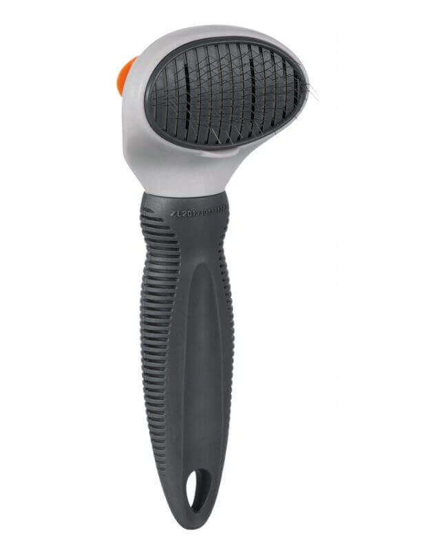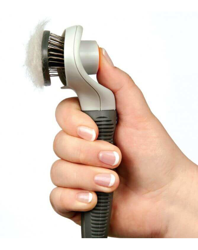 Birste ir izgatavota no izturīgas plastmasas. Tā rokturis labi iekļaujas rokā. Produkts ir piemērots jebkuram suņu matam - gan garam, gan īsam. Liela birstes priekšrocība ir tā, ka tā pati sevi notīra. Pēc suku tīrīšanas atliek tikai nospiest īpašu pogu, lai noņemtu izķemmētos matus no sariņiem. Tas ievērojami atvieglo birstes uzturēšanu tīrā stāvoklī.
