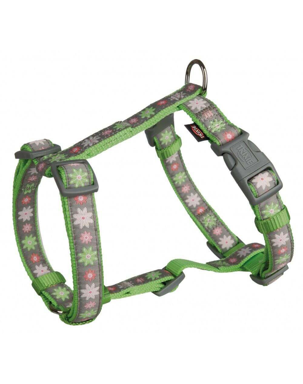 Īpaši izturīgas neilona suņu siksnas. Ar apdrukātu motīvu. Pilnībā regulējams. Krāsa: zaļa Motivs: pelēks ar ziediem