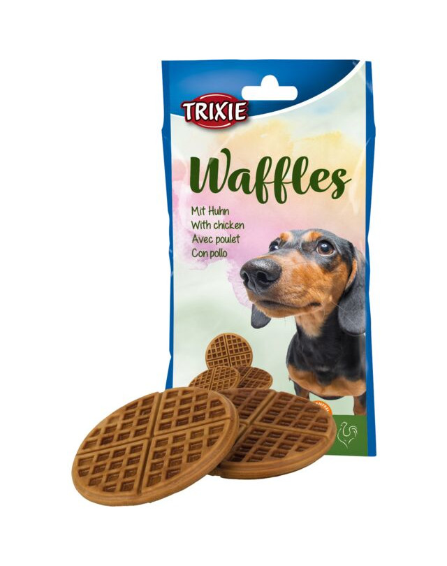 Suņu kārums ar vistas gaļu. Mūsu vafeles ir suņu uzkoda ar vistas gaļu, ko var izmantot kā nelielu balvu vai vienkārši kā kārumu starp ēdienreizēm. Bez lipekļa!