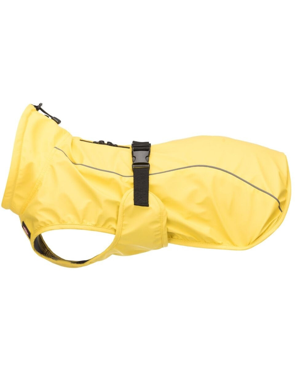 Vimy suņu lietusmētelis ir lieliska aizsardzība pret lietu un vēju. Šim lietusmētelim, kas izgatavots no izturīga poliuretāna un poliestera, ir divas ūdensnecaurlaidīgas rāvējslēdzējas rāvējslēdzējas rāvējslēdzēja aizdares ērtai savienošanai ar apkakli vai siksnu. Atstarojošie elementi nodrošina drošību, pastaigājoties naktī. Ar biksēm pie apkakles, regulējamu vēdera siksnu un ķepu cilpām, mēteli var lieliski pielāgot suņa ķermeņa aprisēm. Turklāt viegli kopjamā odere atvieglo uzturēšanu tīrībā. Nodrošiniet savam sunim komfortu un stilu ar Vimy mēteli.
