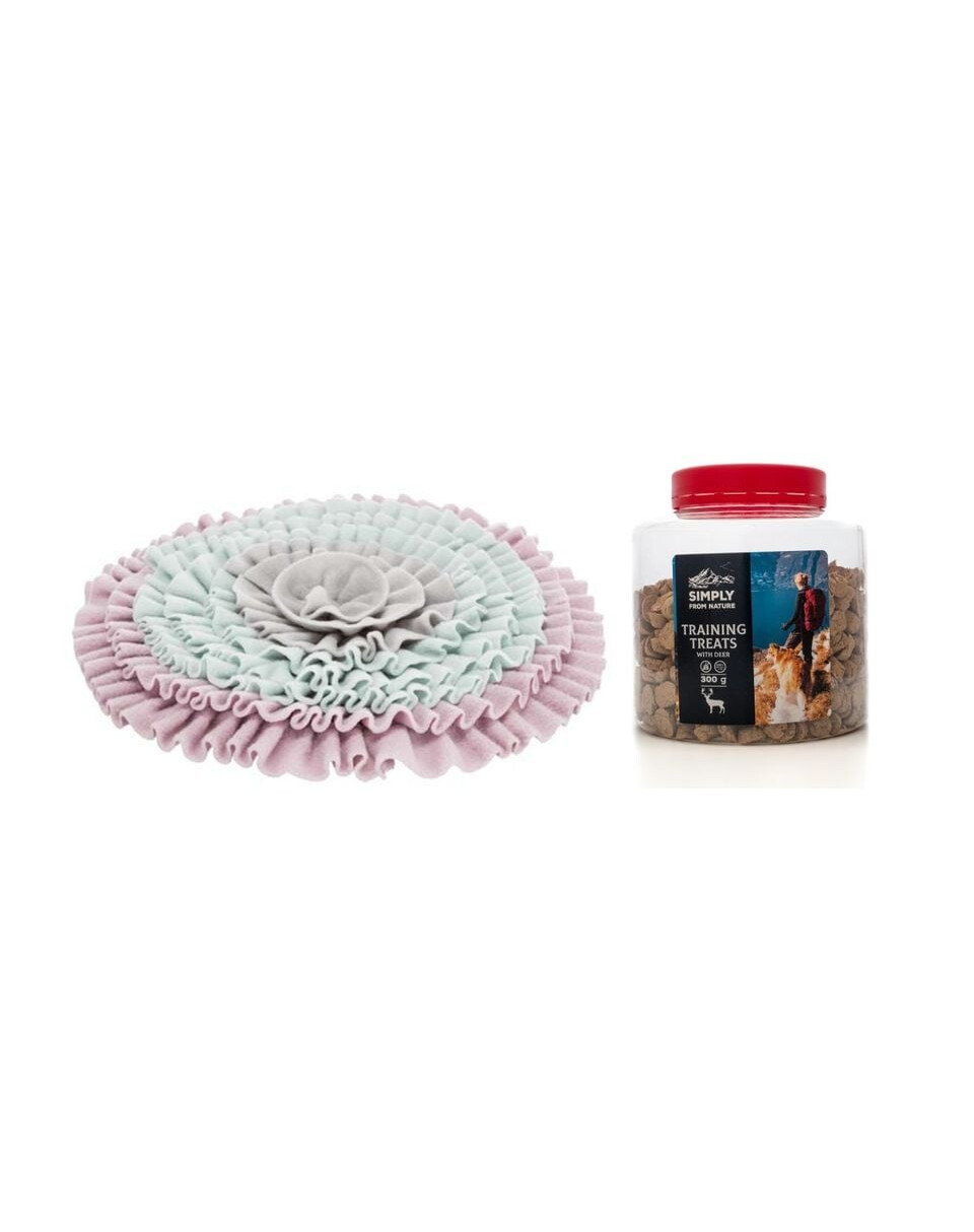 Iespēja paslēpt našķus starp pušķiem padara paklājiņu par ideālu mācību līdzekli mājdzīvniekiem. Turklāt tas palīdz novērst strauju ēdiena norīšanu.