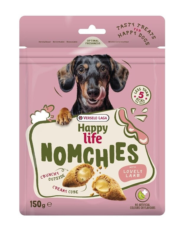 Happy Life NOMCHIES ar LOVELY LAMB ir kraukšķīgs našķis sunim ar krēmīgu pildījumu.