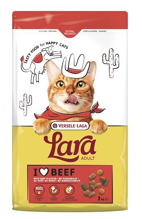 Pilnvērtīga barība Lara Adult with Beef ir izstrādāta domājot par pieaugušiem kaķiem, kuri mīl intensīvu liellopa gaļas garšu. Tas ir ideāls izvēle gan mājas, gan ārā dzīvojošiem kaķiem – nodrošina enerģiju, atbalsta kondīciju un uztur veselīgu svaru.
