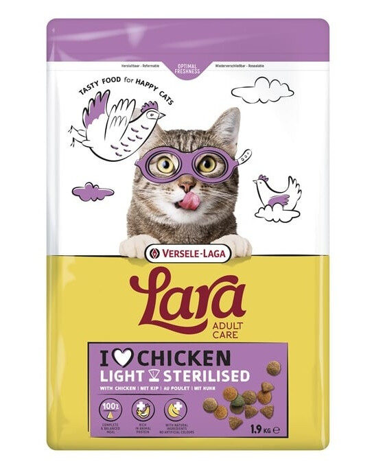 Lara Adult Light Sterilized ir garšīga barība, kas izstrādāta, ņemot vērā sterilizētu kaķu vajadzības un samazinātu aktivitāti. Satur atbilstoši sabalansētus uzturvielu komponentus, kas palīdz uzturēt veselīgu svaru, vienlaikus nodrošinot enerģiju un vitamīnus, kas nepieciešami ikdienas aktivitātēm.