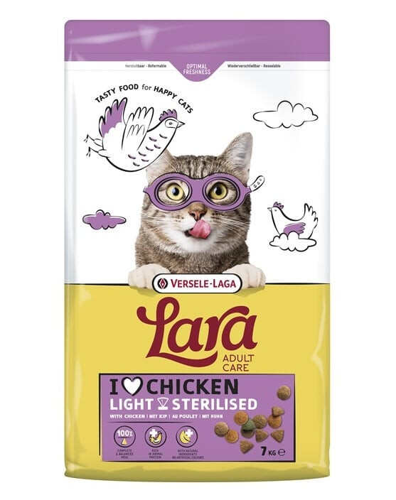 Lara Adult Light Sterilized ar vistu ir lieliski sabalansēta barība pieaugušiem kaķiem pēc sterilizācijas operācijas un tiem, kuri dzīvo mierīgāku dzīvesveidu. Tā nodrošina optimālu enerģijas daudzumu un palīdz uzturēt pareizu svaru, neatsakoties no garšas, kuru kaķi mīl.