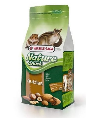 Snack Nutties ir riekstiem bagāts maisījums (zemesrieksti, lazdu rieksti, mandeles, kokosrieksti un priežu rieksti) trušiem un visiem grauzējiem. Stimulē veselīgu stāvokli un vitalitāti.