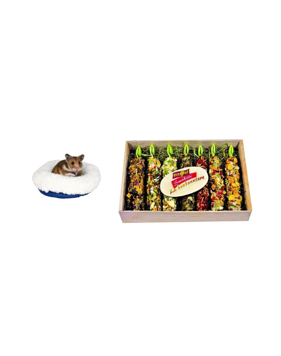 Ideāla dāvana jebkuram mazam grauzējam vai trušim. Koka kaste ar 7 dažādām Smakers garšu kombinācijām. Ideālas uzkodas katrai dienai. Papildina grauzēju un trušu uzturu. Pateicoties nepārspējamai ražošanas tehnoloģijai, tie nodrošina dabiskus vitamīnus un minerālvielas no sastāvdaļām, ar kurām tie ir bagāti.