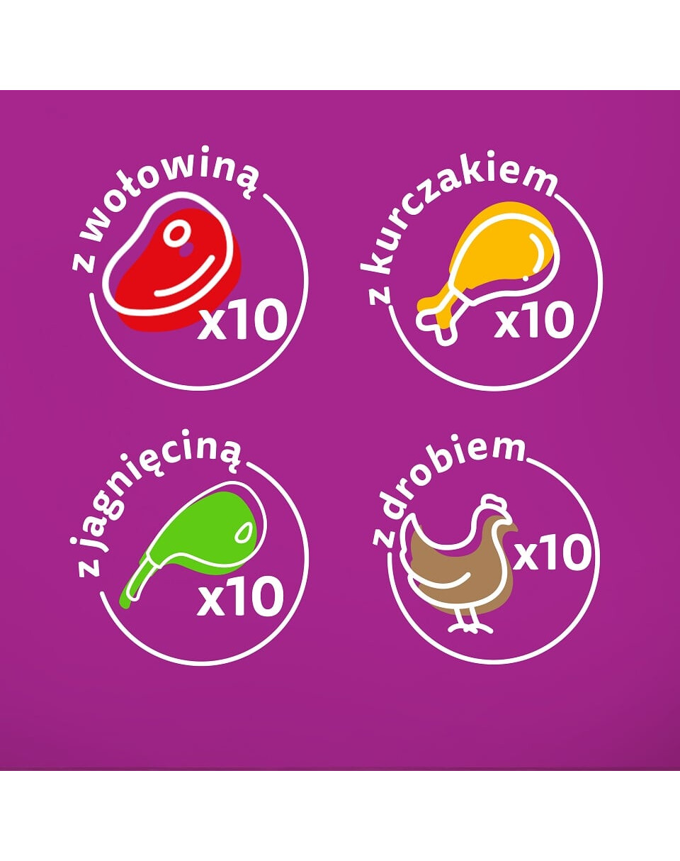 Mūsu Whiskas Classic maltītes mērcē ir īpaši izstrādātas, lai saglabātu augstas kvalitātes sastāvdaļu dabiskās priekšrocības un garšu. Tie liks jūsu kaķim nākt pie bļodas ātrāk nekā jebkad agrāk! Jūsu kaķu draugs izbaudīs vienu no četriem variantiem, gabaliņus ar liellopu gaļu, vistas gaļu, jēra gaļu un mājputnu gaļu. Šī garšīgā barība ērtā paciņā satur cinku, kas veicina ādas un kažoka veselību, savukārt pareizais minerālvielu līdzsvars palīdz rūpēties par jūsu mīluļa urīnceļu veselību. No rotaļīga kaķēna līdz krāšņam pieaugušam kaķim - mūsu garšīgās formulas ir izstrādātas tā, lai visu vecumu kaķi ēdienreizēs un pēc tam apmierināti purpotu.