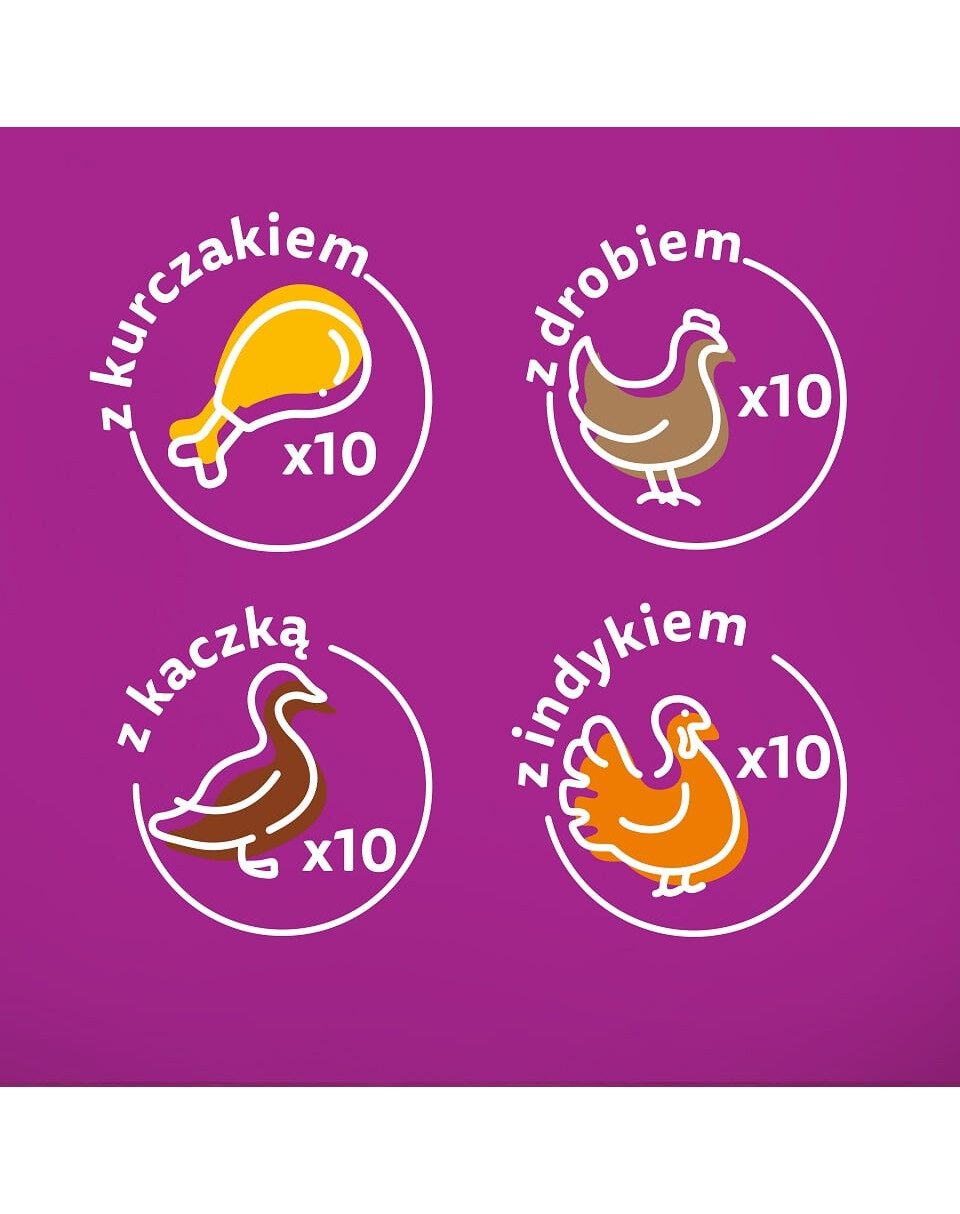 Garšīgie Whiskas putnu gaļas želejveida frī kartupeļu gabaliņi ir sagatavoti tā, lai saglabātu to dabisko garšu un uzturvērtību. Gatavošana tvaikā padara tos sulīgus un maigus, kas liks jūsu kaķim murgot no sajūsmas. Jūsu kaķu draugs priecāsies par vienu no četriem variantiem, gabaliņiem ar: vistu, tītaru, mājputnu gaļu, pīli. Whiskas barība ir pagatavota no dabīgām sastāvdaļām un augstas kvalitātes olbaltumvielām, neizmantojot mākslīgās krāsvielas vai konservantus, lai nodrošinātu izcilu ēšanas baudījumu. Viegli ēdami, garšīgi, maigi kumosiņi satur cinku, kas veicina ādas un kažoka veselību, un pareizais minerālvielu līdzsvars palīdz rūpēties par jūsu mīluļa urīnceļu veselību.