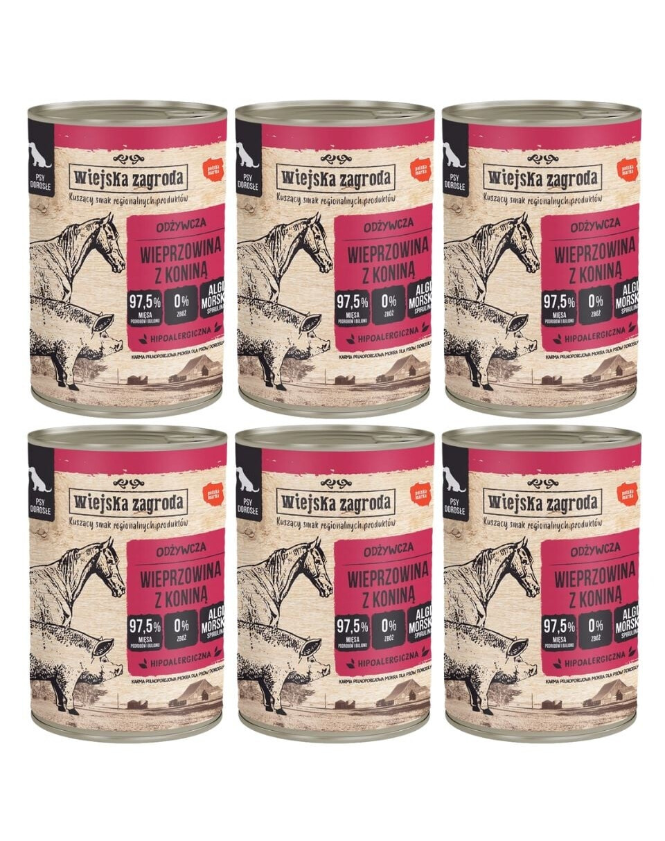Mitrā pilnvērtīgā barība pieaugušiem suņiem WIEJSKA ZAGRODA Cūku gaļa ar zirgu gaļu