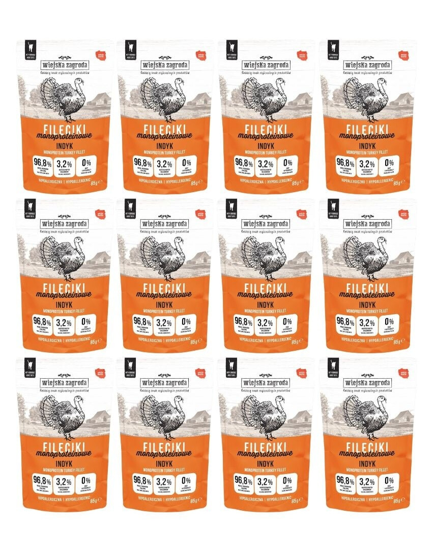 Meklē dabīgu mitro barību kaķim maigu, sulīgu filetiņu veidā, kas iemērkti aromātiskā mērce? Monoproteīna filetiņi Wiejska Zagroda ir ideāla izvēle! Katrs iepakojums satur rūpīgi atlasītus tītara gaļas gabaliņus ar izcilu konsistenci, kas ir īpaši pievilcīgi katram kaķim. Ar 96,8% gaļas, iekšējo orgānu un buljona saturu, bezgraudu recepti un hipoalerģisku sastāvu, filetiņi būs piemēroti pat kaķiem ar jutīgu gremošanas sistēmu. Dabiska mitrā barība kaķiem filetiņu veidā – veselība un garša katrā iepakojumā