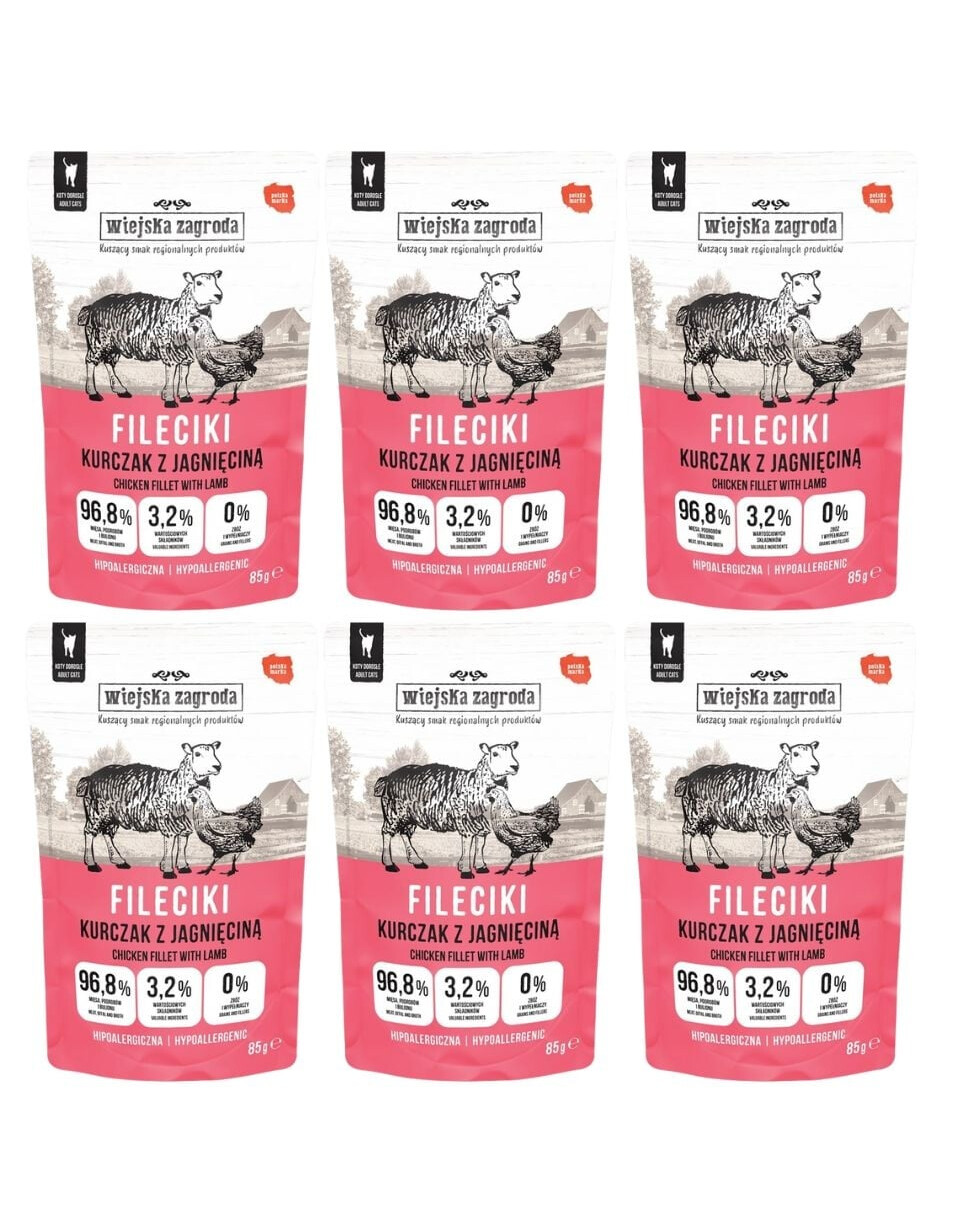 Kāpēc izvēlēties filetiņus ar vistu un jēra gaļu no Wiejskiej Zagrody?Wiejska Zagroda mitrā barība kaķiem filetiņi Vistas ar Jēra gaļu ir ideāla mitrā barība pieaugušiem kaķiem. Augstā gaļas satura un maigo filetiņu struktūras dēļ tā lieliski derēs gan izvēlīgiem kaķiem, gan tiem ar jutīgu gremošanas sistēmu. Pateicoties praktiskajiem 85 g iepakojumiem, kaķa barošana ir ārkārtīgi ērta. Izvēlieties Polijas zīmolu, kas novērtēts par augstāko sastāvdaļu kvalitāti, un nodrošiniet savam mīlulim visu, kas