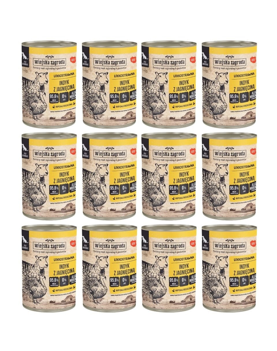 Pilnvērtīga mitrā barība pieaugušiem suņiem Wiejska Zagroda Indyk ar jēra gaļu