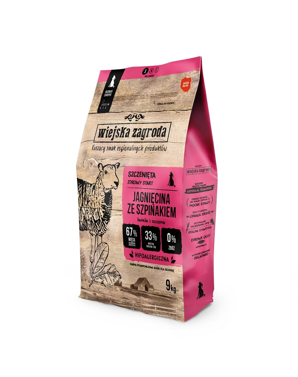 Jēra gaļa ir maiga, veselīga gaļa, kas ir bagāta ar linolskābi, kas atbalsta organismu un kavē vēža procesus. Apvienojot to ar tītaru un vistu, mēs iegūstam pilnvērtīgu ēdienkarti attīstošam kucēnam. Spinātu pievienošana ir C vitamīna, magnija un folskābes avots – nepieciešams intensīvas izaugsmes un mācību laikā.