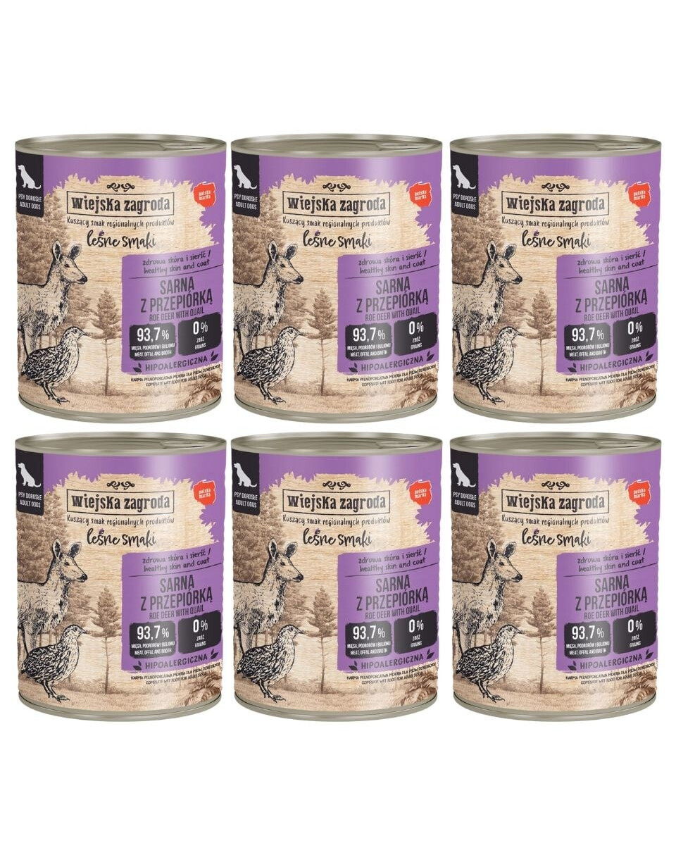 WIEJSKA ZAGRODA Лесные вкусы Олень с перепелом влажный корм для собак 6x800 г