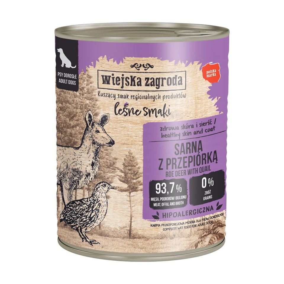 WIEJSKA ZAGRODA Лесные вкусы Олень с перепелом влажный корм для собак 12x800 г