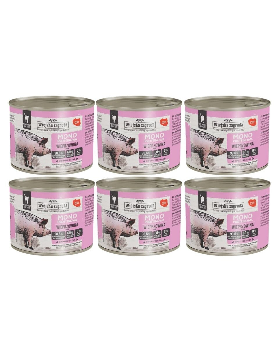 Iepazīstieties ar monoproteīna mitro barību WIEJSKA ZAGRODA kaķiem. Katrs bundulis satur vienu veidu gaļu, kas ir pirmajā vietā katrā sastāvā!