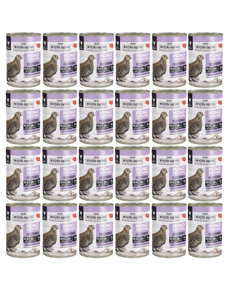Katrs WIEJSKA ZAGRODA monobaltās barības bundulis satur vienu veidu gaļu, kas ir pirmajā vietā katrā sastāvā.