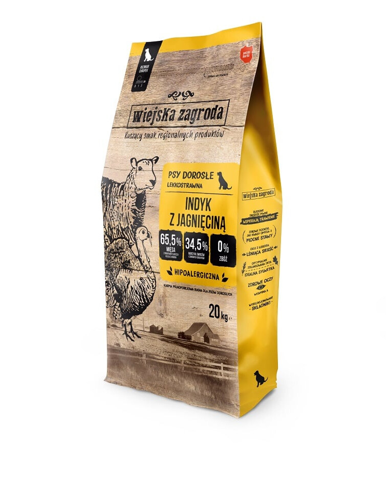 Wiejska Zagroda ir poļu pilnvērtīga suņu barība, kas pagatavota ar vislielāko rūpību. Reģionālie produkti no vietējiem piegādātājiem ir garantija, ka sastāvdaļas, no kurām mēs gatavojam barību, ir svaigas un kvalitatīvas. Barība tika radīta, lai dotu mūsu suņiem to, kas tiem visvairāk nepieciešams - gaļu!