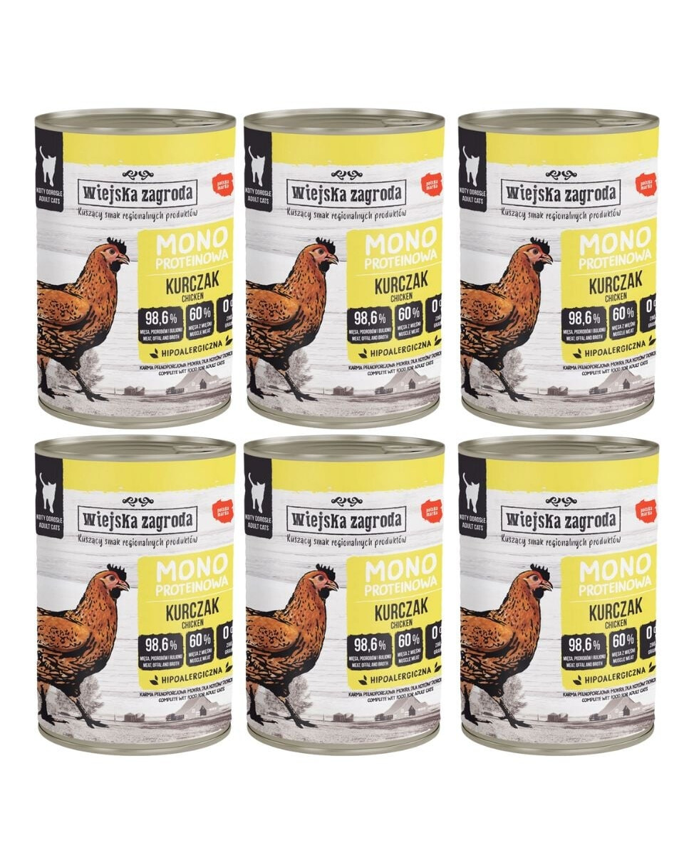 WIEJSKA ZAGRODA Монобелковый влажный корм для кошек с курицей 6x400 г