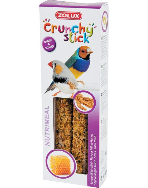 No dabīgām, vitamīniem bagātām sastāvdaļām gatavotās Crunchy Sticks kolbas ir īpaši izstrādātas kā papildbarība lolojumputniem. Tie ir izstrādāti, lai apmierinātu katras sugas īpašās vajadzības, un ir bagātināti ar 2 sastāvdaļām, kas nodrošina baudījumu. Veselīgi, bez krāsvielām, konservantiem un pievienotā cukura, tie veicina dabisku knābja kopšanu. Turklāt iepakots maisiņā, lai ilgāk saglabātos svaigs.
