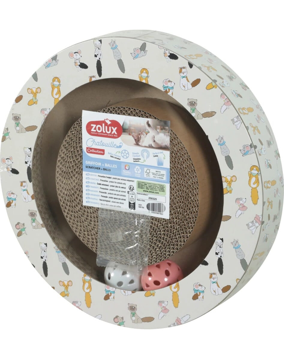 Scratcher ZOLUX CHATOUILLE with balls is an innovative product combining the function of scratching with interactive play. The round design with built-in balls provides multi-level entertainment for cats, satisfying their natural behavioral needs.