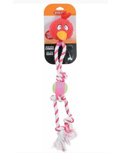 Zolux pliušinis žaislas šunims kamuoliukas + virvė 55 cm raudonas